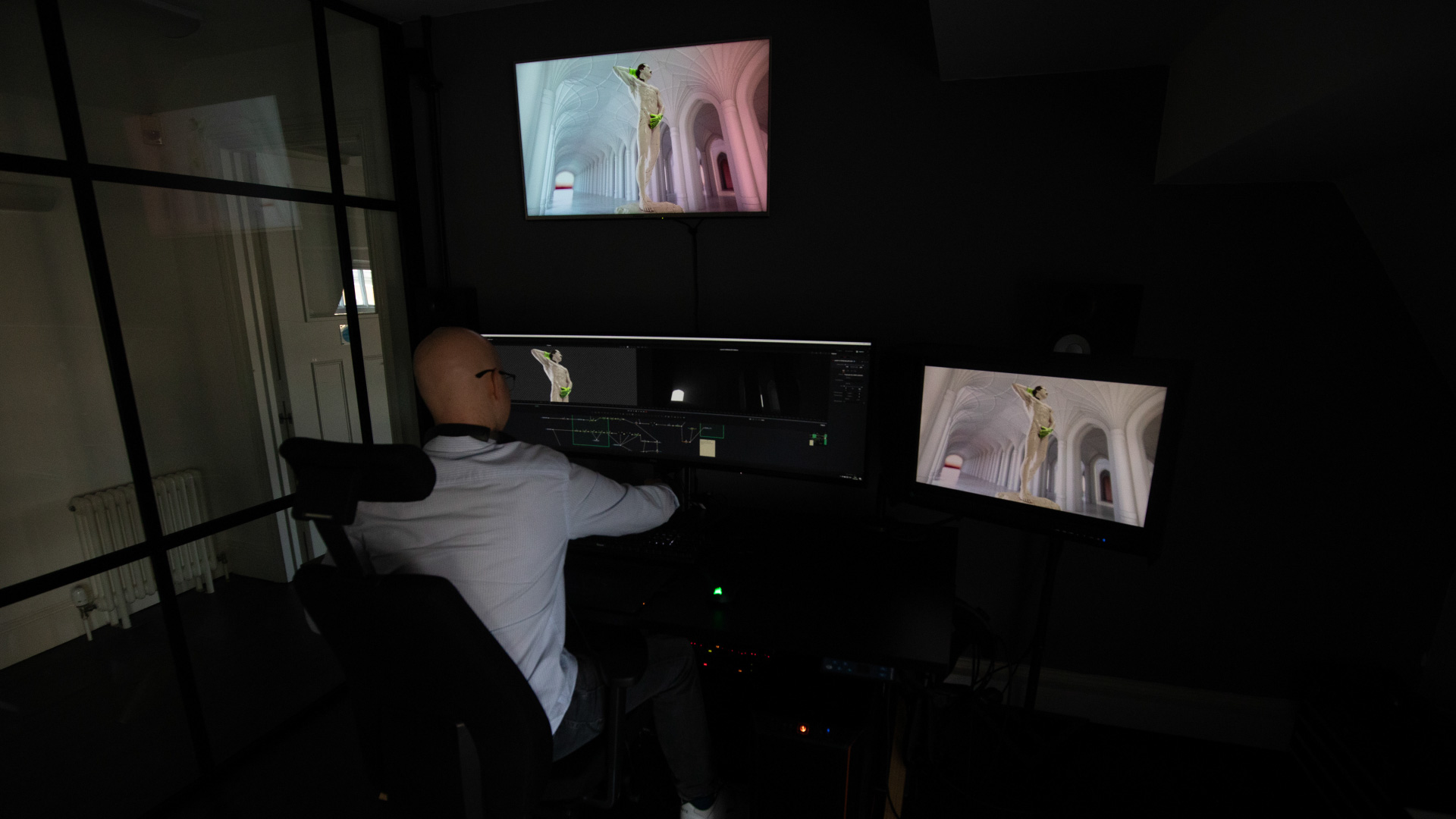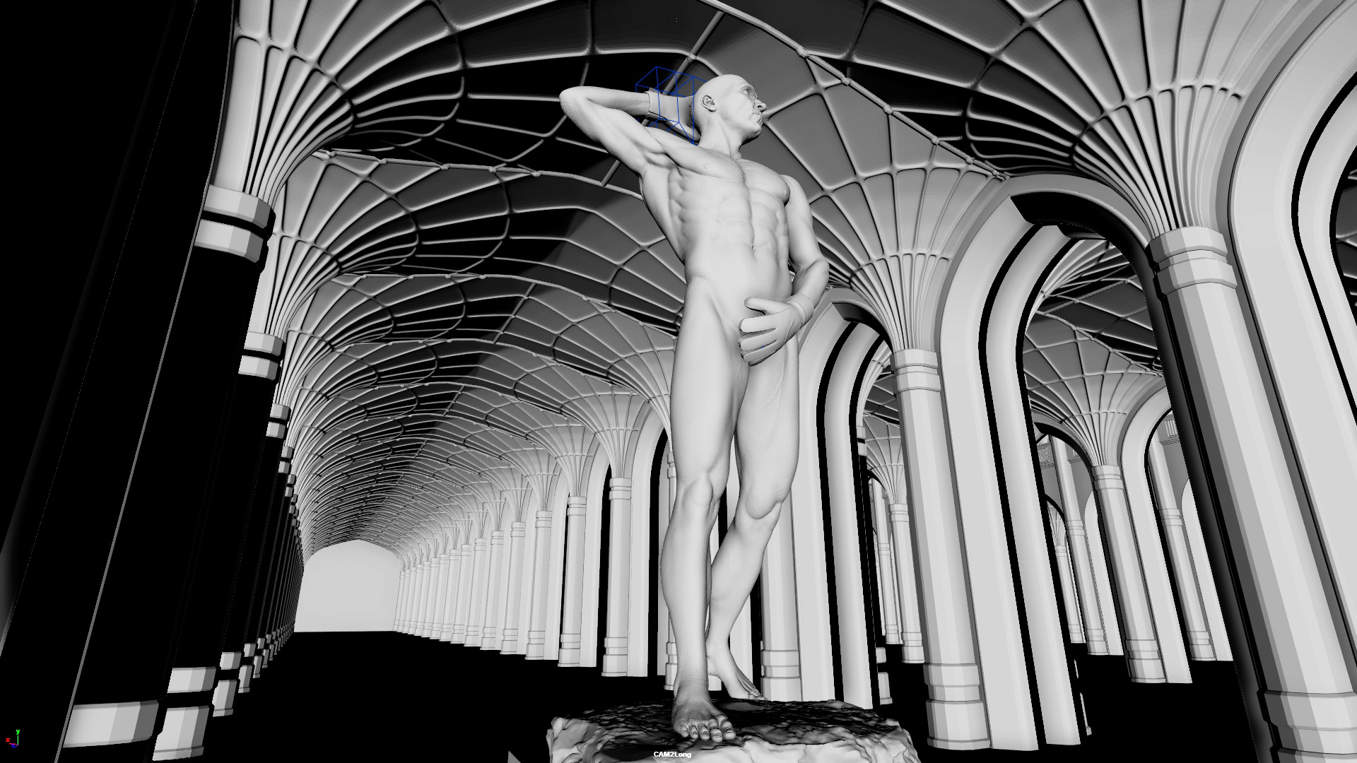 After digesting the client’s creative references, we set to work exploring and developing ideas. This involved gathering truckloads of material about marble – from walls and floors to busts and statues – as getting the detail right was so fundamental to the piece.
