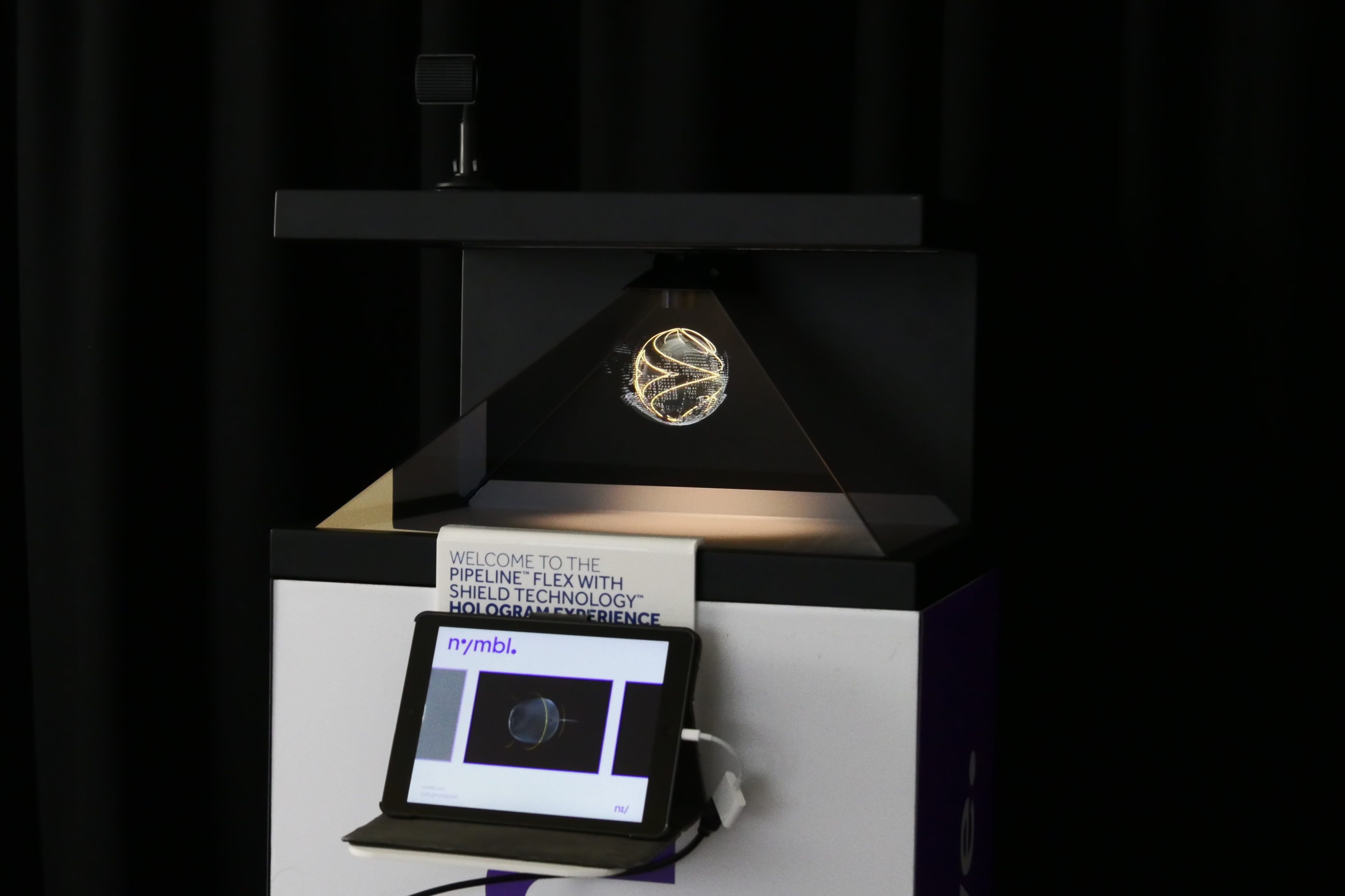 So we bought a 4K screen connected to a small computer, and 3D-printed our own casing that would fit the screen and mount snugly (with our nymbl logo on the back).