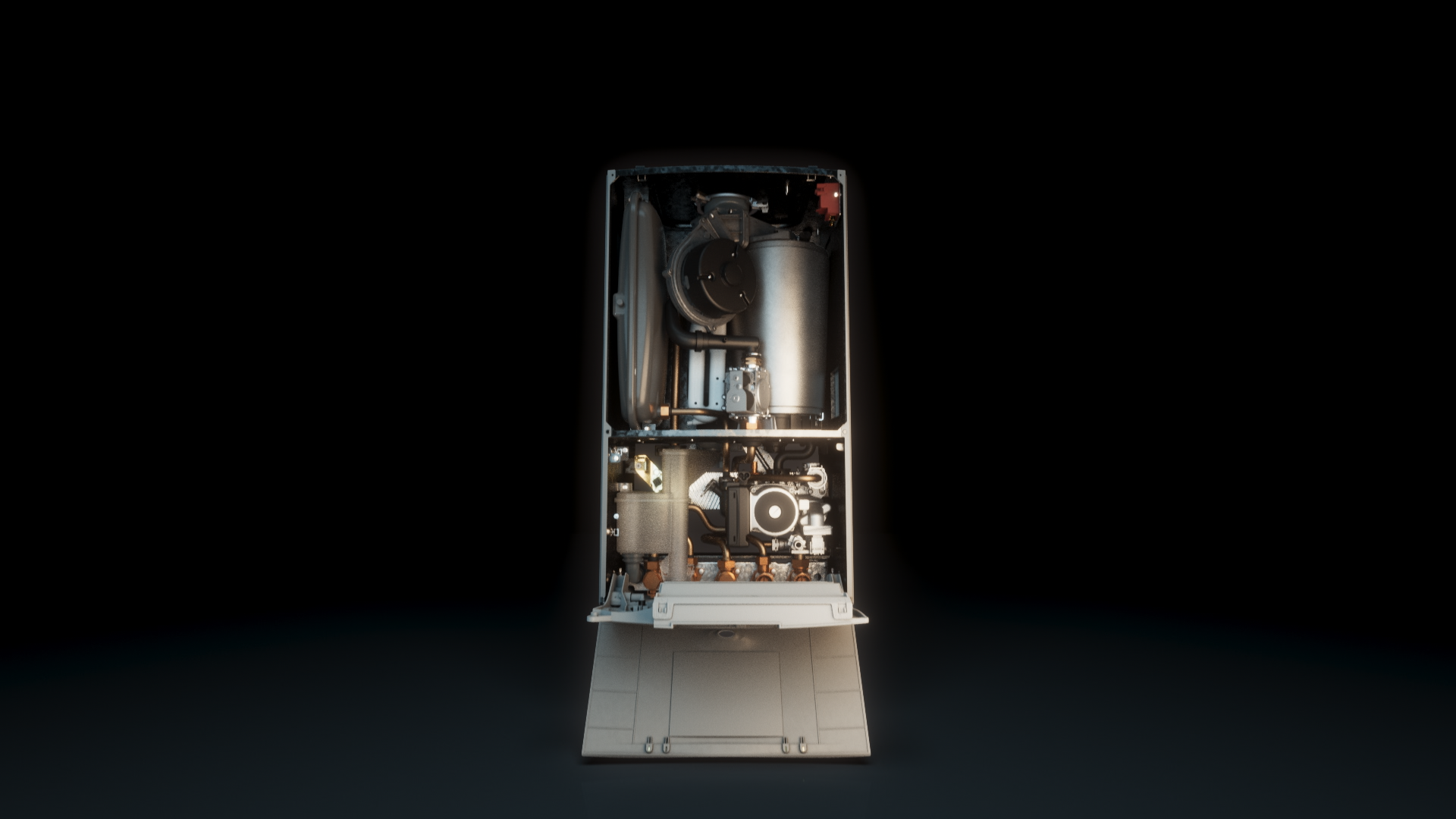 This posed our biggest challenge on the project. We animated the boiler in a sparse, white art gallery. And it’s difficult to light such a dazzling-white scene without making the product look obviously CG.