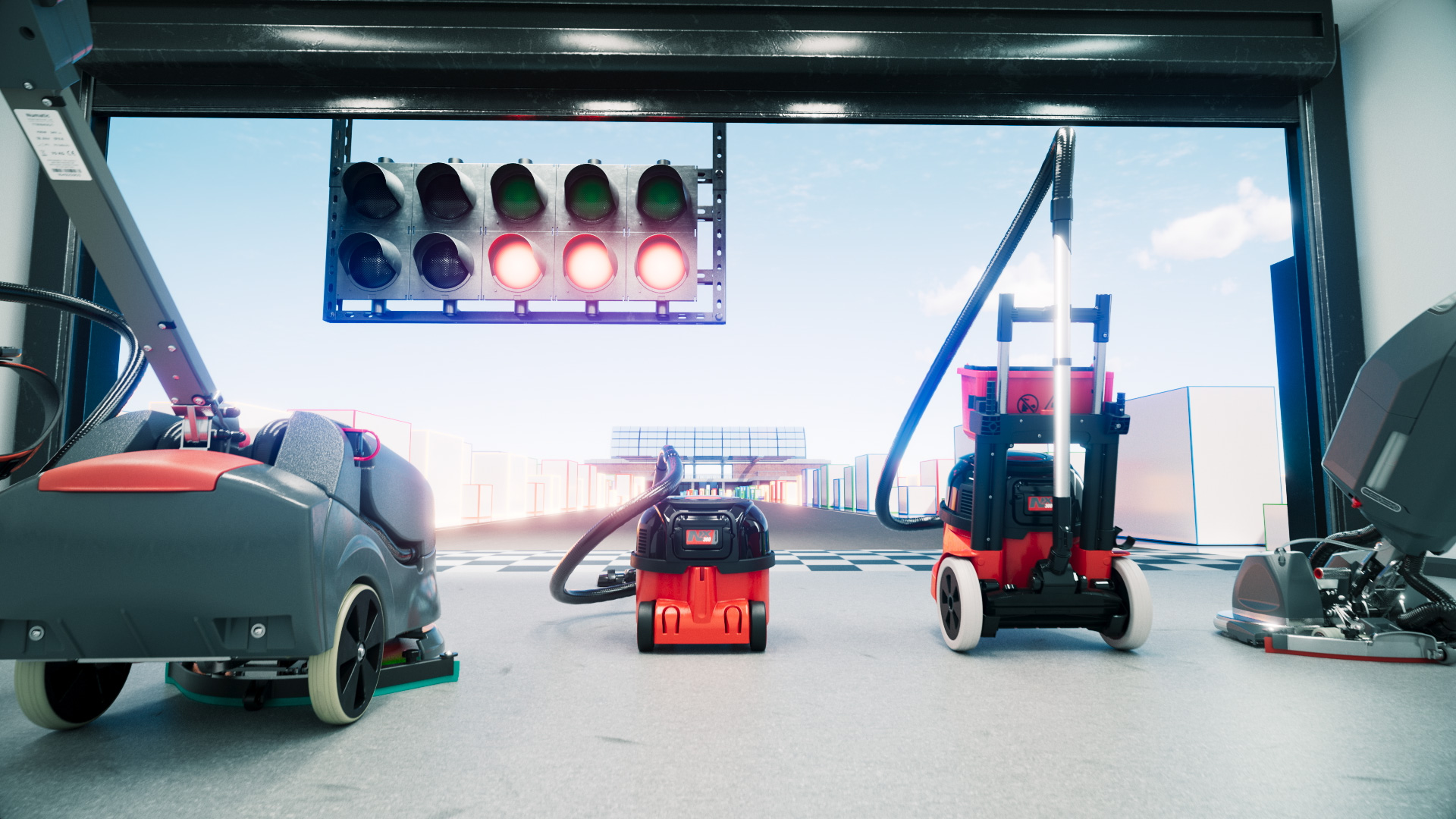 Our brief was to demonstrate how the NX300 battery works across the current range of products, from the new 244NX compact scrubber dryer↗ to the commercial version of the beloved Henry.